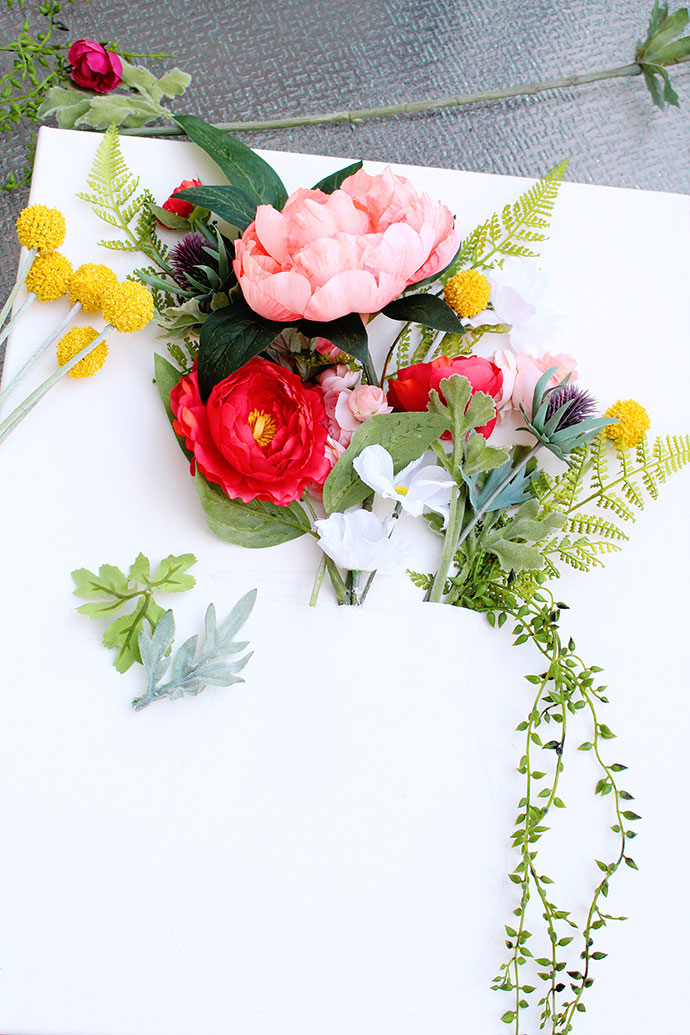 除了Emily的这个教程,小意达还找到了另一个同类型的教程,作者是来自加拿大的La Petite Fête,步骤一样,但在花朵的部分是手绘和仿真花结合,一些飞溅的颜料看起来更有氛围。