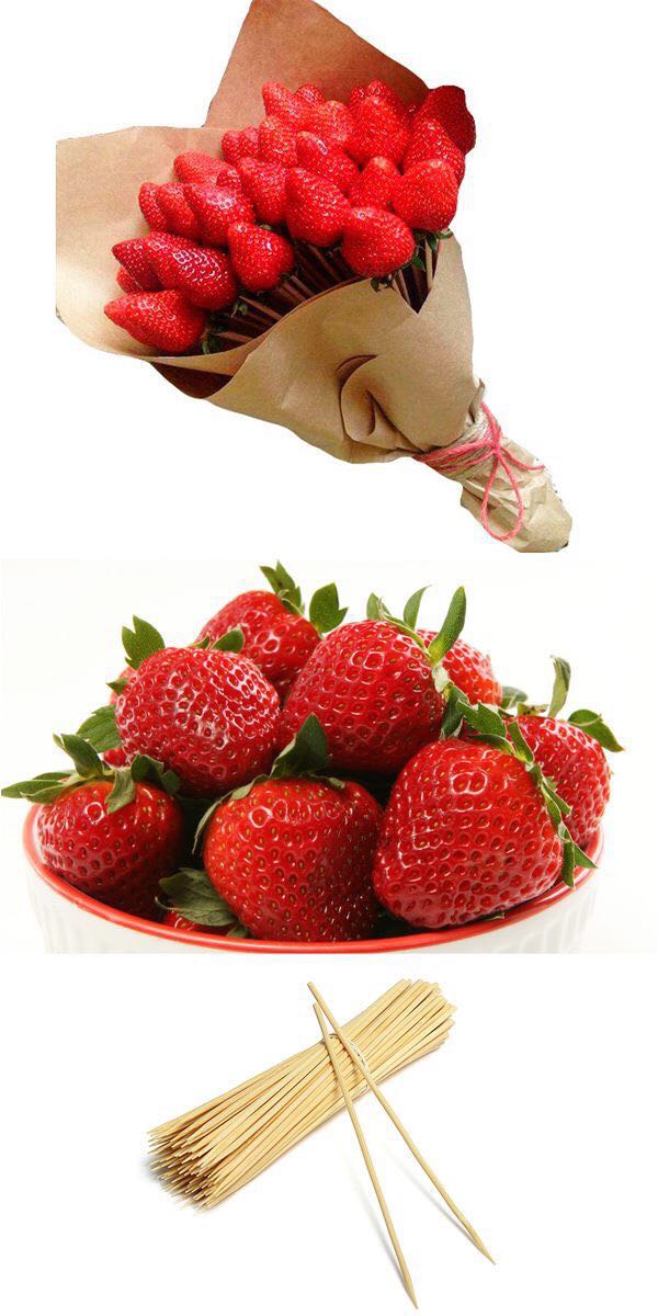 在国内的市面上的可以吃的花束中,比较常见的就是草莓花束了,相信没有收到过的也应该都见过,可爱红嘟嘟的草莓可以说是人见人爱,没有人能够抗拒的美味了。DIY草莓花束也非常简单,只需竹签和包装纸即可。