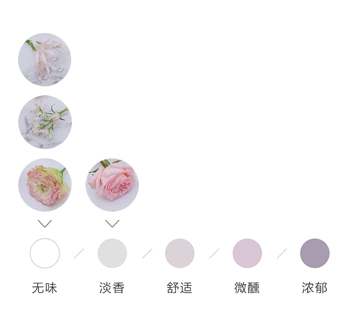 为了方便大家在花材搭配时的选择,花田小憩APP特设香味等级图谱,供大家在学习过程中了解更多植物的属性,以方便作品选择更适合的空间位置陈列。