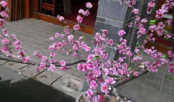<span>一株靓桃花插在厅堂里,满树星红</span>