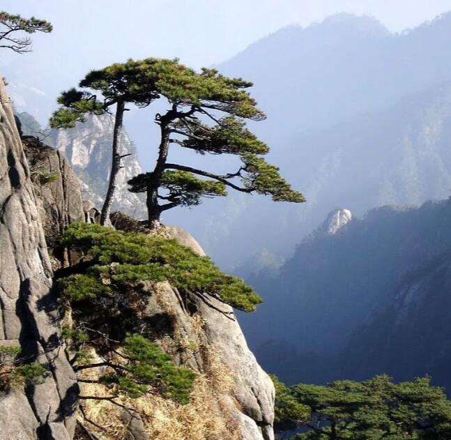 在传统观念中,除了耐寒,松常与山石相伴。西晋政治家、诗人刘琨有《扶风歌》(曾被当成古乐府作品),开头两句就是“南山石嵬嵬[wéi],松柏何离离”,如果周围没有一些乱石映衬,松树的品格似乎就体现得不够完美。著名的黄山迎客松,也必须与旁边的嶙峋怪石相衬,它那受强风影响发育成的“旗形树冠”看上去才显得不那么“畸形”。