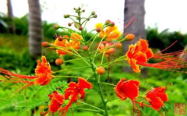 金凤花性喜阳光,怕湿,因为是热带树种,耐寒不耐热,一般遇到5-8℃的低温时,枝条就会被冻伤。盆栽的金凤花冬季时要记得移入温室内,且室温不应低于10℃;