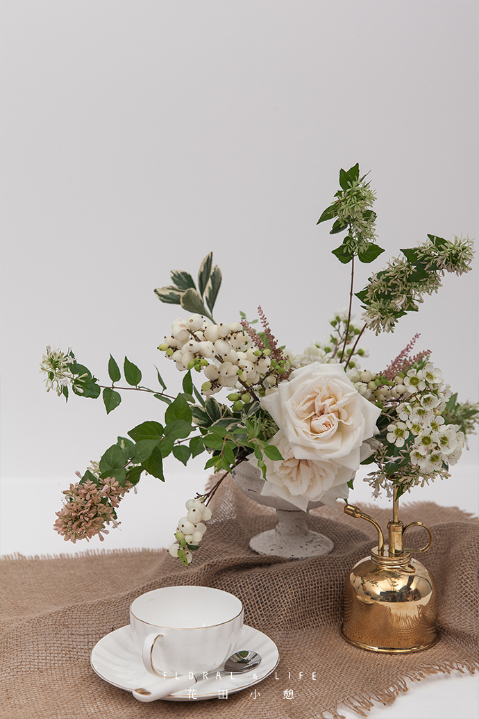 与麻布、小金壶搭配,营造出的氛围,随便一拍都是极好的‘复古盖茨比’景致。