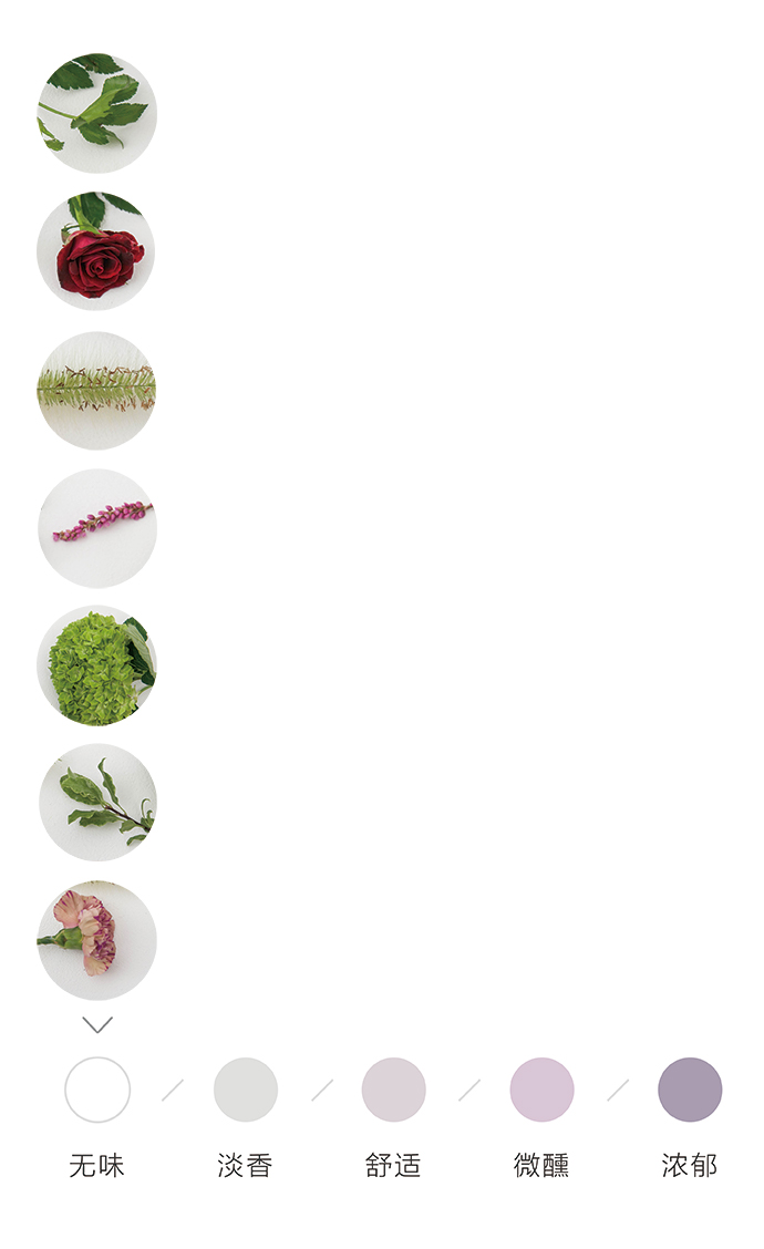 为了方便大家在花材搭配时的选择,花田小憩APP特设香味等级图谱,供大家在学习过程中了解更多植物的属性,以方便作品选择更适合的空间位置陈列。