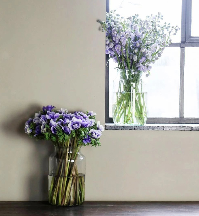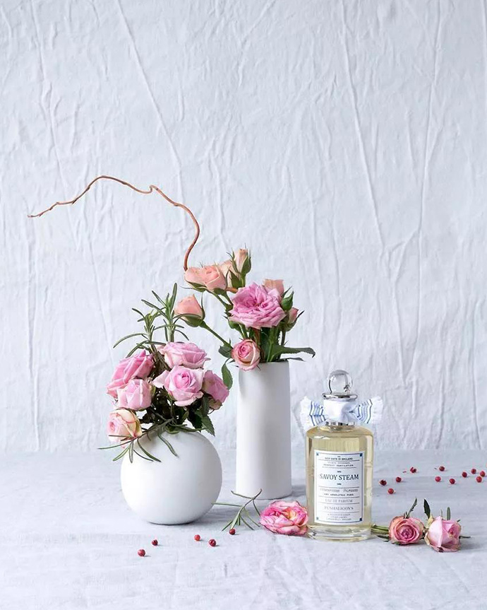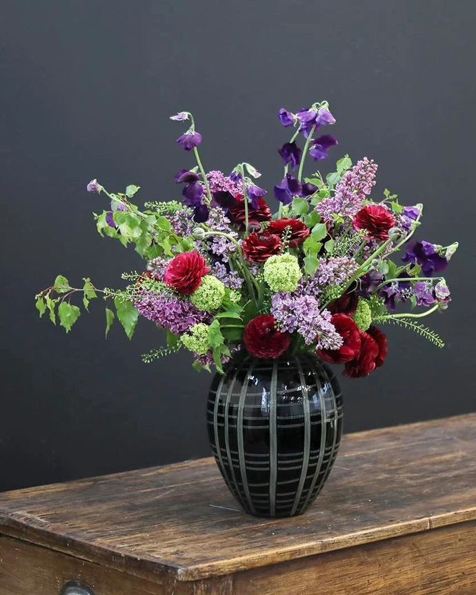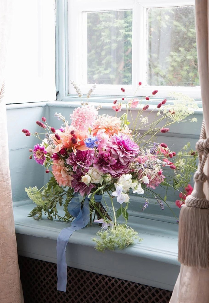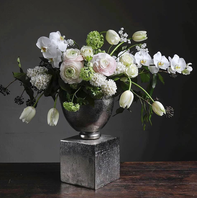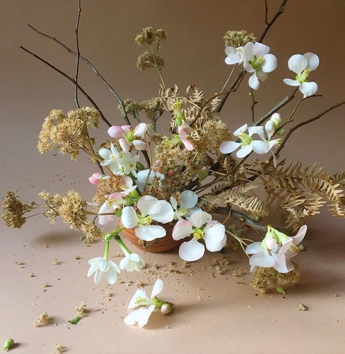 2、使用与花艺作品为同类色的背景拍摄。