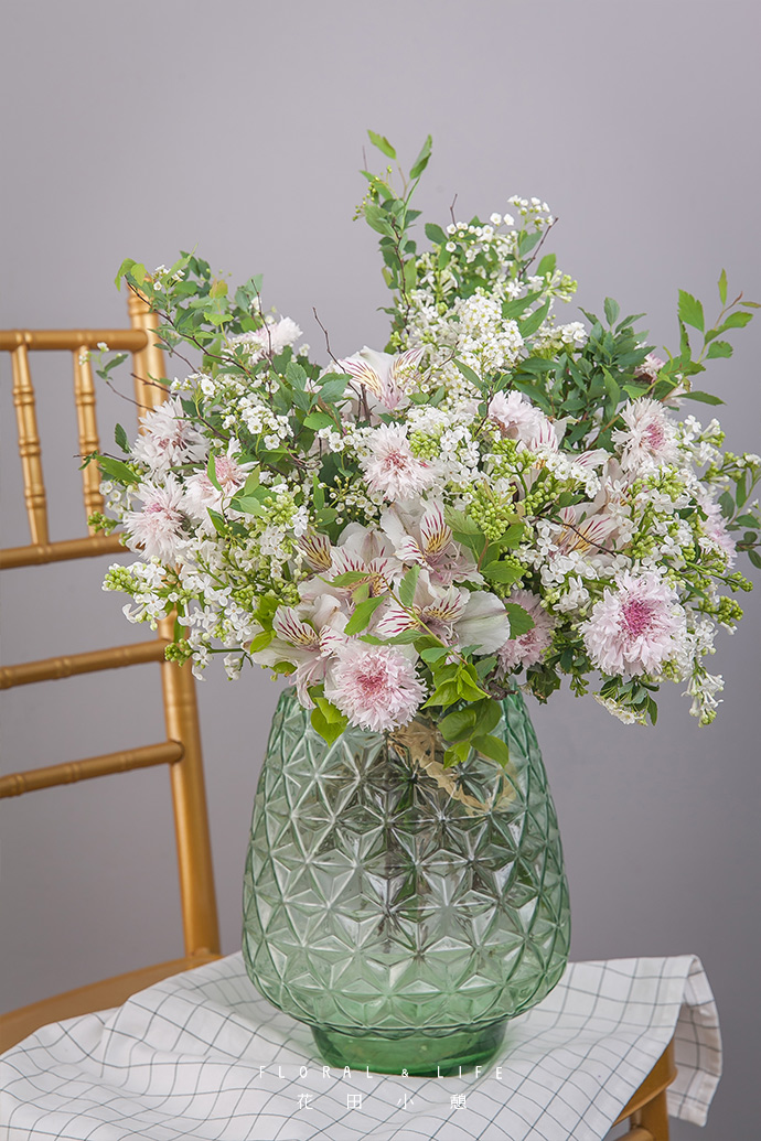 挑选一款与作品气质搭配的花器加清水养护。花要插得如同在原野中绽放,这应该是插花的修炼秘笈,从花里得到生气,内心也更加充实,再也没有比这更幸福的事情了。