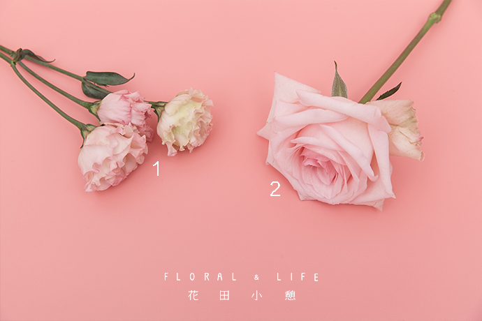 — 步骤 —制作花束前,要先处理用到的花材,本期作品只使用了荔枝玫瑰和粉色洋桔梗两种花材,需将玫瑰叶子全部摘除,修剪所有花材的花瓣。