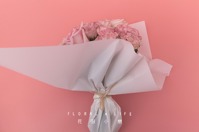 本次作品使用到的雾面纸、白色雪梨纸和少女粉手提抱抱桶均由「花生馅」APP提供。