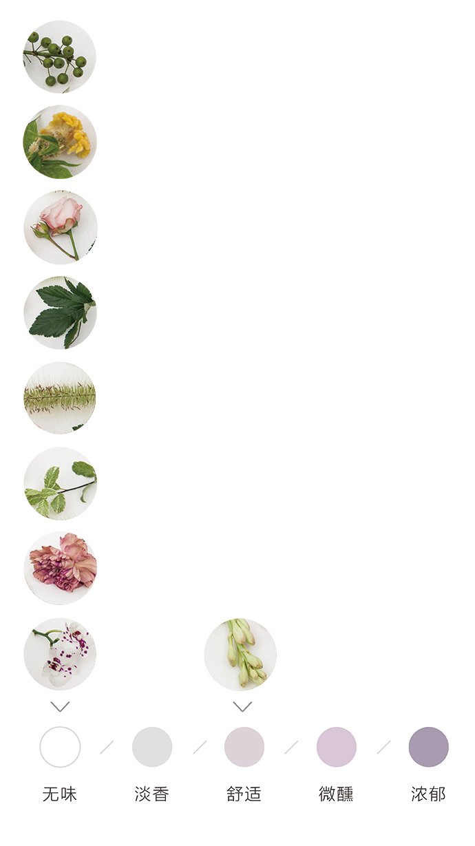 为了方便大家在花材搭配时的选择,花田小憩APP特设香味等级图谱,供大家在学习过程中了解更多植物的属性,以方便作品选择更适合的空间位置陈列。
