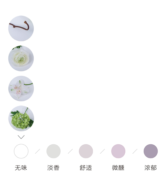 为了方便大家在花材搭配时的选择,花田小憩APP特设香味等级图谱,供大家在学习过程中了解更多植物的属性,以方便作品选择更适合的空间位置陈列。