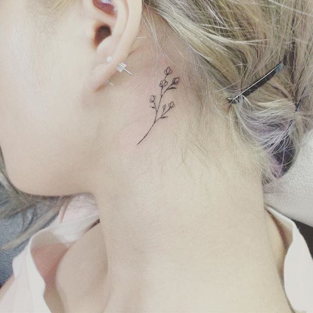 耳根后的纹身一般会选择一些姿态比较“高挑”的细长花朵。