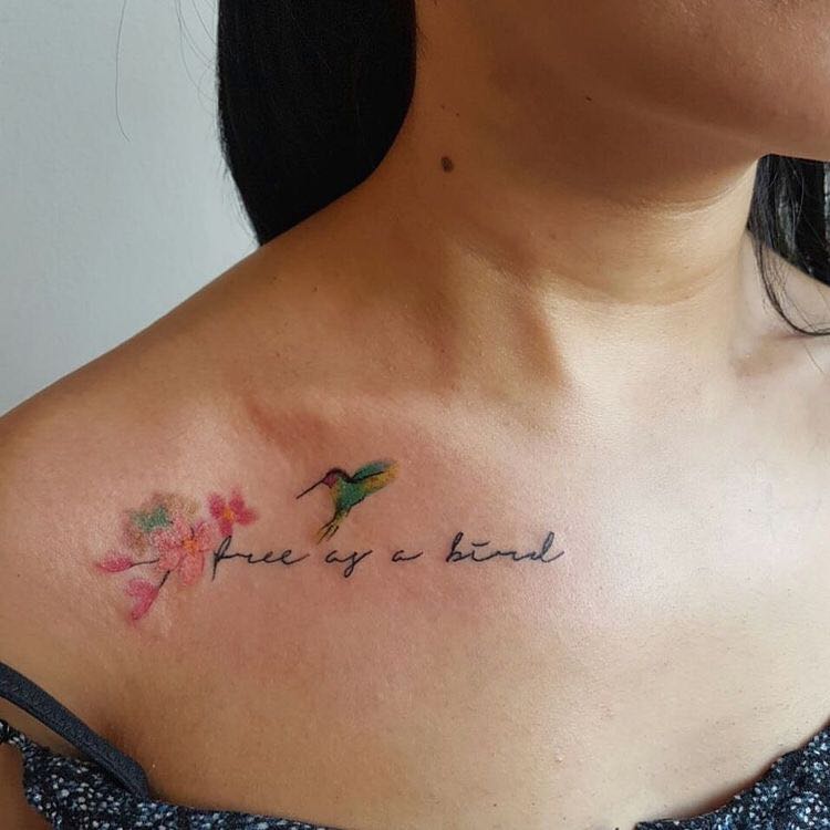 女生的锁骨纤巧、迷人,是身上最美的部位之一,在纹上漂亮的花朵纹身之后就更与众不同了。无论是简单的迷你小花纹身还是带有英文名字与花朵的纹身都极具个性。