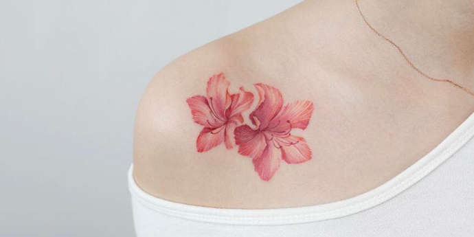 进入夏季,难免会“小露香肩”,性感的肩膀上如果来上一朵小花的点缀,那真的是性感极了。