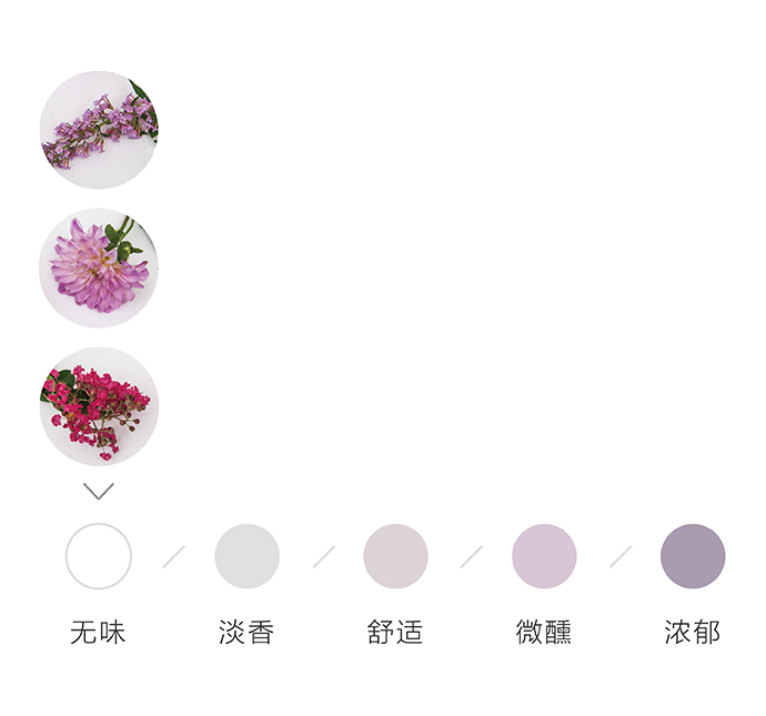 为了方便大家在花材搭配时的选择,花田小憩APP特设香味等级图谱,供大家在学习过程中了解更多植物的属性,以方便作品选择更适合的空间位置陈列。