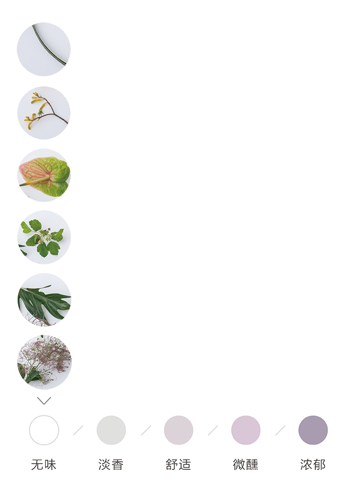 为了方便大家在花材搭配时的选择,花田小憩APP特设香味等级图谱,供大家在学习过程中了解更多植物的属性,以方便作品选择更适合的空间位置陈列。