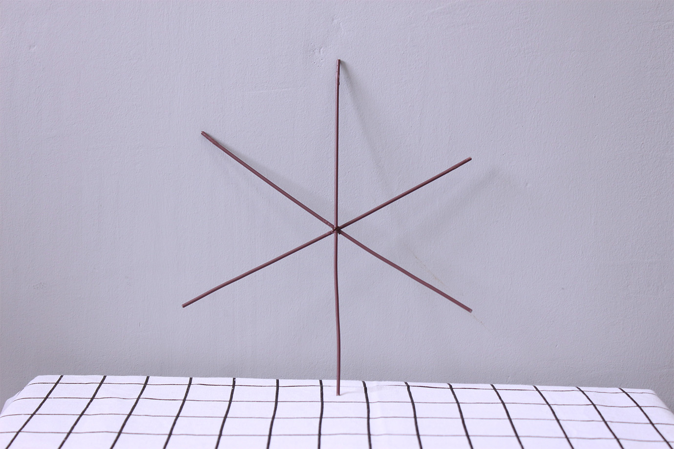 于是重新做了一个,不用园艺铁丝,单纯地用细铁丝固定云龙柳。结果如下。发现同样很结实,也不影响功能。(这个架构的功能一是装饰,二是为后面加入的试管提供支撑。)