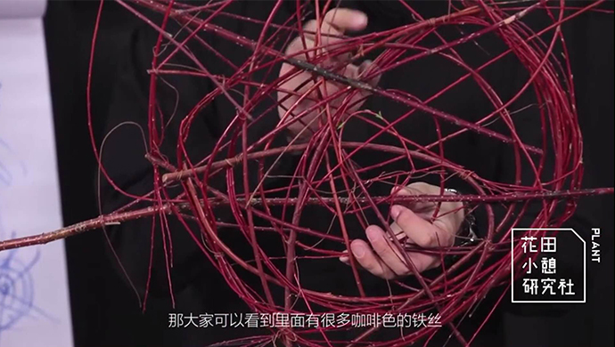 在《线形设计原理-交叉线》视频里,曹老师用红柳和红瑞木做了个架构。这个架构是怎么做的呢?老师解释了一下。