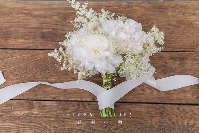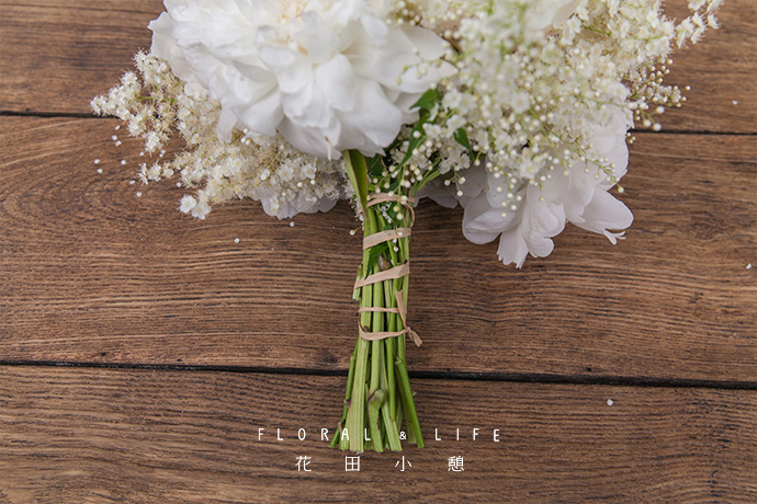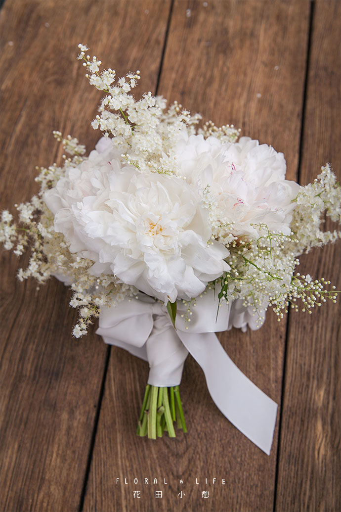 围绕芍药,加入几支珍珠梅,增加手捧花体量。