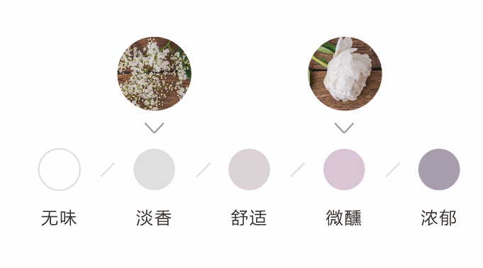 为了方便大家在花材搭配时的选择,花田小憩APP特设香味等级图谱,供大家在学习过程中了解更多植物的属性,以方便作品选择更适合的空间位置陈列。