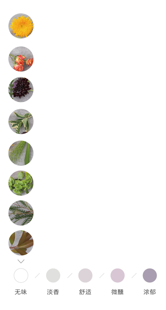 为了方便大家在花材搭配时的选择,花田小憩特设香味等级图谱,供大家在学习过程中了解更多植物的属性,以方便作品选择更适合的空间位置陈列。