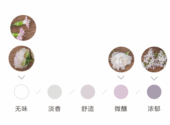 为了方便大家在花材搭配时的选择,花田小憩APP特设香味等级图谱,供大家在学习过程中了解更多植物的属性,以方便作品选择更适合的空间位置陈列。