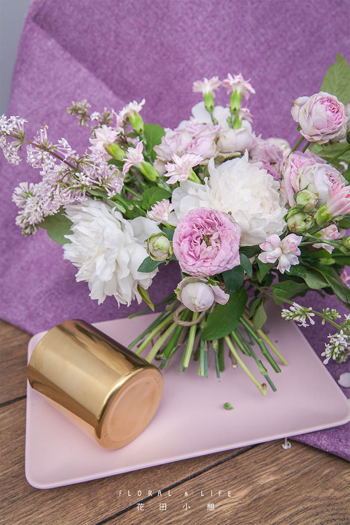 向花束中加入芍药,增加花束的体量。