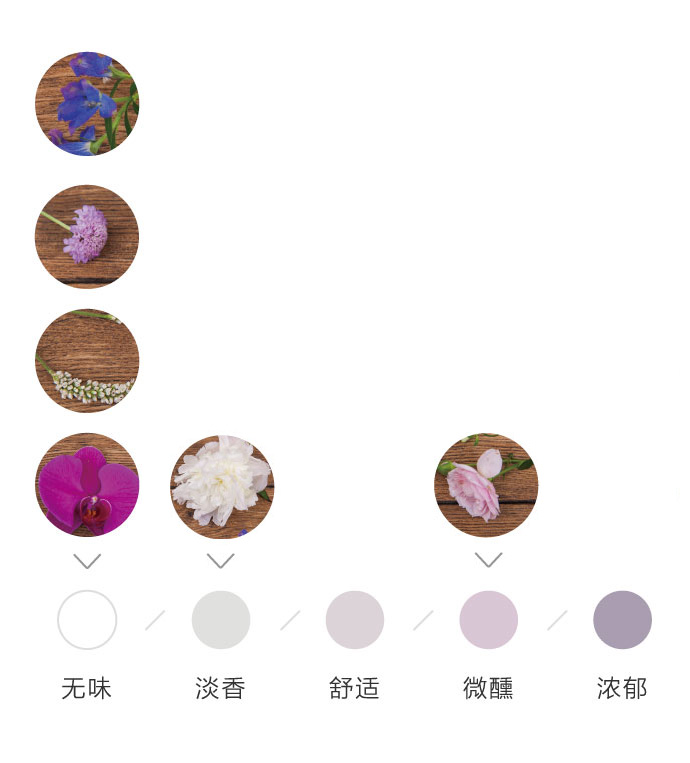 为了方便大家在花材搭配时的选择,花田小憩特设香味等级图谱,供大家在学习过程中了解更多植物的属性,以方便作品选择更适合的空间位置陈列。