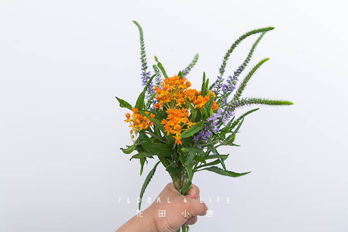 将一支马利筋握在手中,作为花束的中心。