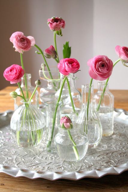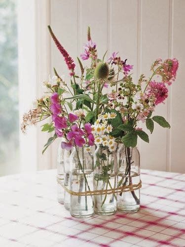 或者不妨将大大小小的瓶花用麻绳捆绑在一起或放入托盘置于餐桌上,这个小作品可绝对不输专业的花艺师喔!