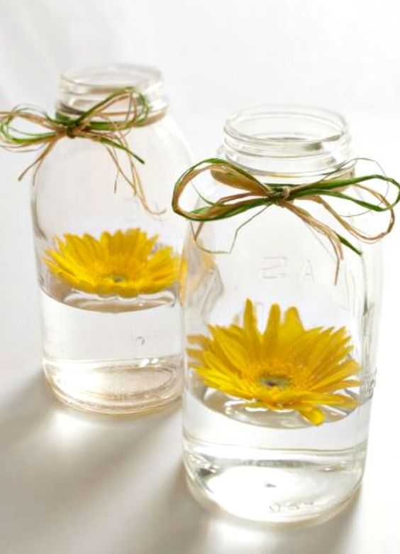 在花朵开始纷纷枯萎的最后时期,总会有那么几朵小花还在努力绽放,这个时候不要丢弃它们,剪短花茎,将花儿放入较浅的花器中漂浮于水面,也是观赏花儿的一种方式。