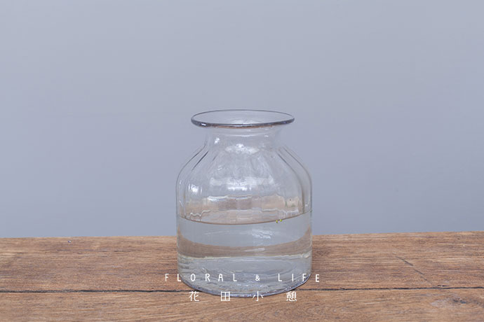 玻璃花器中注入清水,水量应不低于2/3。