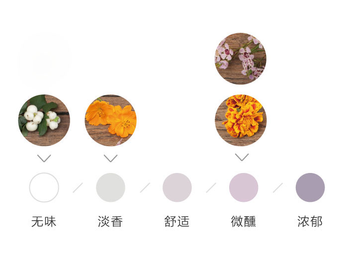 为了方便大家在花材搭配时的选择,花田小憩特设香味等级图谱,供大家在学习过程中了解更多植物的属性,以方便作品选择更适合的空间位置陈列。