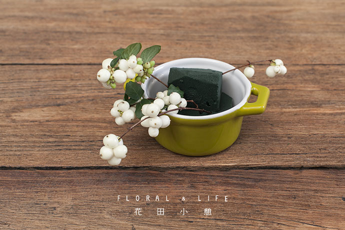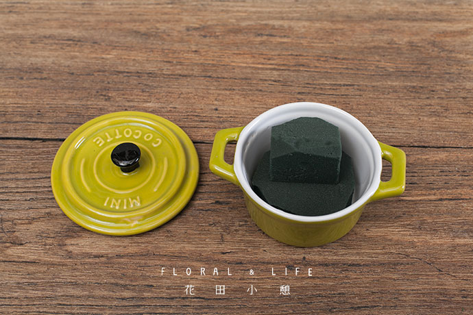 花艺是一件更贴近生活的艺术。今天选择瓷质砂锅作为花器,向其中放入大小适中的两层花泥。
