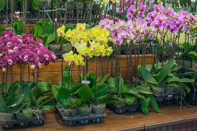 这一株开在最前排的花儿,可以很好的表达我对植物满满的爱。满满货架整齐的摆放着各色的蝴蝶兰,粉红的,黄色的,绿色的,双色的,不论任何地方的蝴蝶兰都有着至高无上的地位。