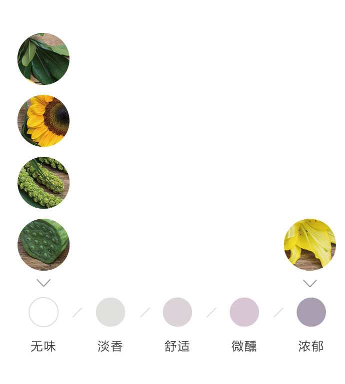 为了方便大家在花材搭配时的选择,花田小憩特设香味等级图谱,供大家在学习过程中了解更多植物的属性,以方便作品选择更适合的空间位置陈列。