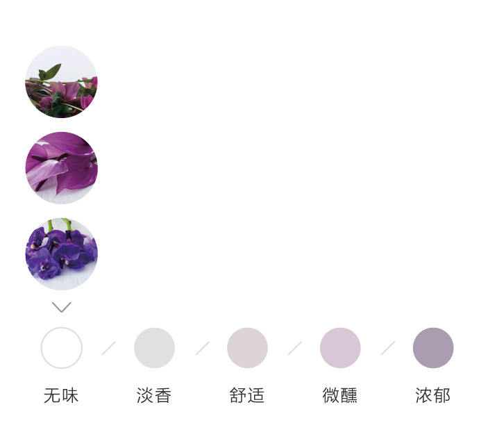 为了方便大家在花材搭配时的选择,花田小憩特设香味等级图谱,供大家在学习过程中了解更多植物的属性,以方便作品选择更适合的空间位置陈列。