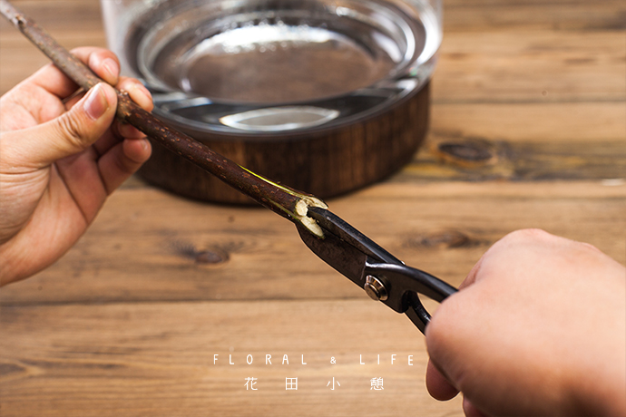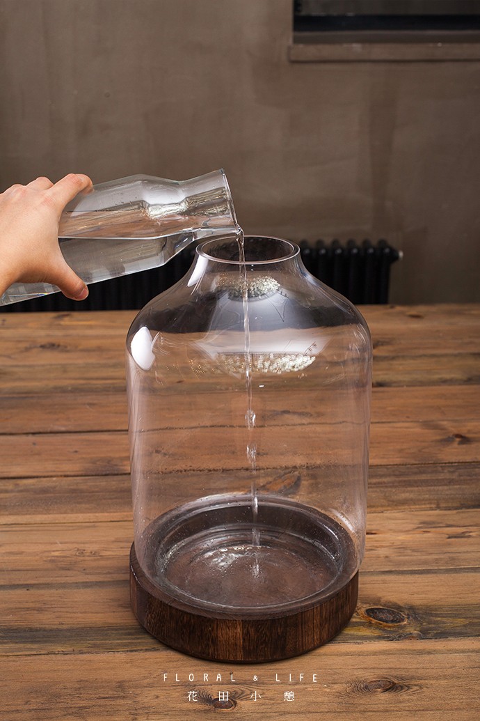 插花时合理用水可保持花材长时间的“美丽姿态”,选择质地较为纯净的清水,根部水位不低于10厘米。