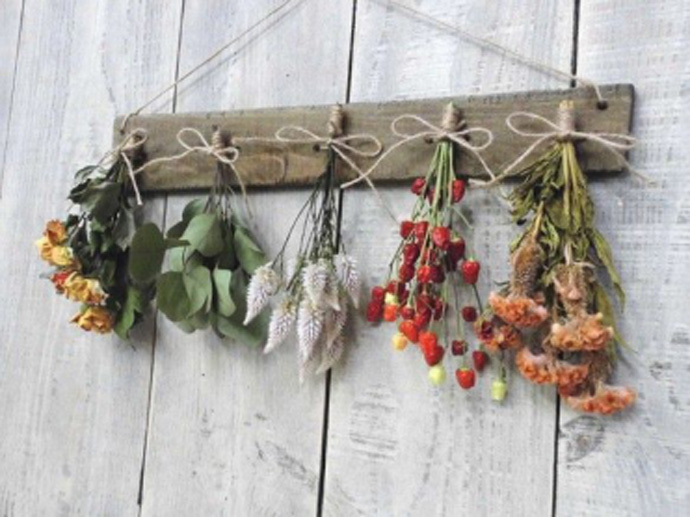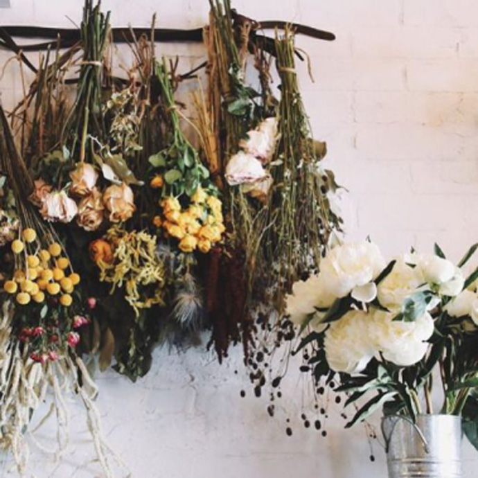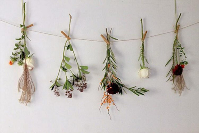 悬挂放干最常见的干花制造方法。只需将花整理之后,分类倒挂至通风阴凉处,二周左右即可变成干花。