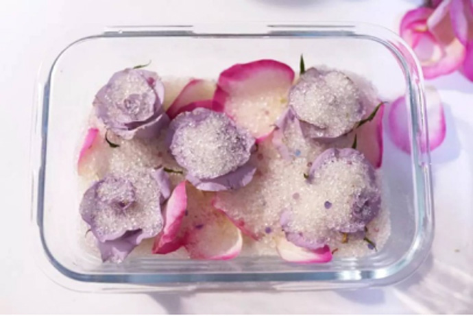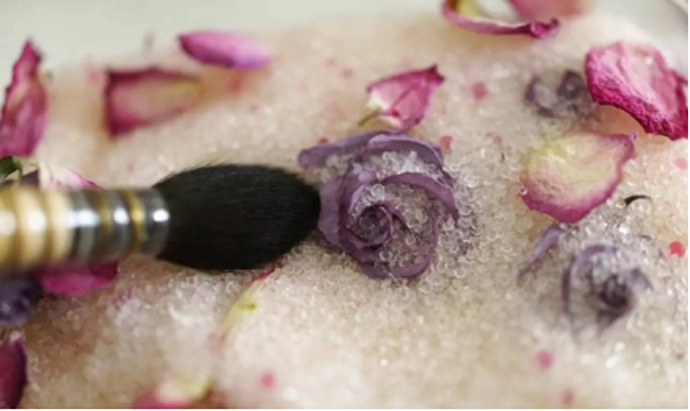 注意事项:将硅胶粉均匀洒在鲜花上,保证每一个花瓣之间的缝隙都被填上