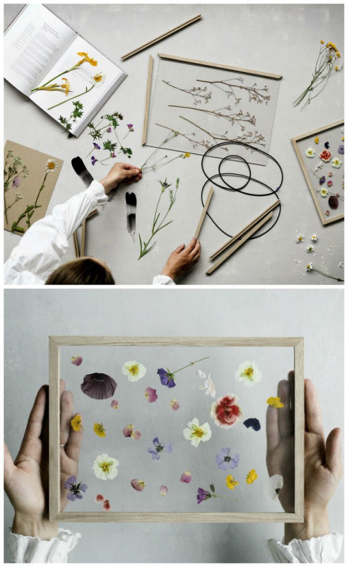 可以将干花摆成任意想要的样子做成一幅独一无二的画框