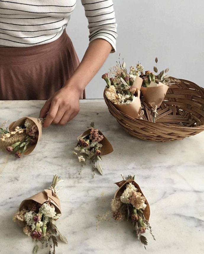 以上四种方法,不知道你有没有get到呢?做成的干花就可以用来长期保存啦,再来分享几组干花的创意玩法。做成迷你小花束
