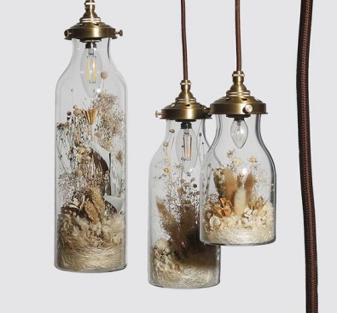 将干花放置于透明容器中倒挂做挂饰
