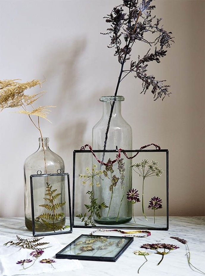 将干花放置于透明的玻璃容器中做摆件
