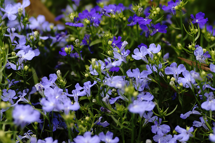 六倍利的学名叫垂吊半边莲,9-10月播种,自然花期从夏季至秋季。从播种至开花需14-16周。六倍利分枝性和下垂感强,花色丰富,花朵密集可爱。