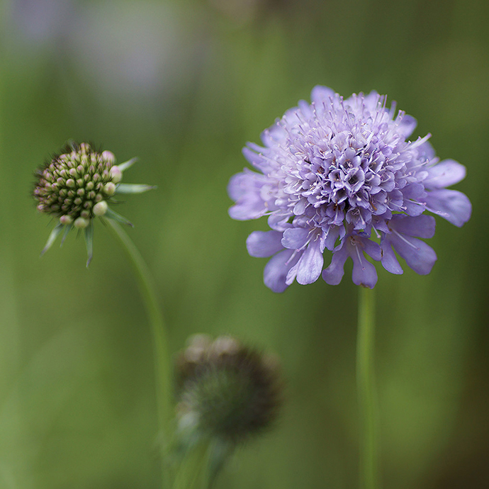 蓝盆花又名轮锋菊,松虫草。花期4~5月。切花品种一般花茎很长,而园艺品种则比较矮小。