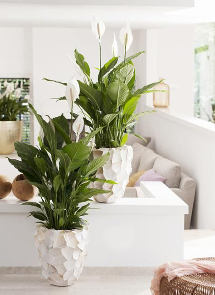 白鹤芋又名白掌,是欧洲最流行的室内观叶植物之一。它不仅可以调节室内的温度和湿度,还能有效净化空气中的酒精、丙酮、三氯乙烯、苯、甲苯、一氧化氯、臭氧等。因为它对臭氧的净化率特别高,放在厨房里,还能去除做饭时的味道、油烟以及挥发物质。