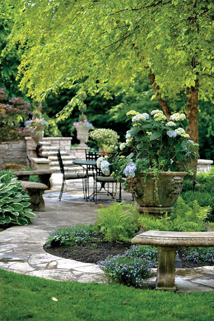 在中间或一隅处置一套桌椅。阳光如炬时,悠闲的读上一本书,累时,倒头便睡,直到日暮微凉,被人叫醒。