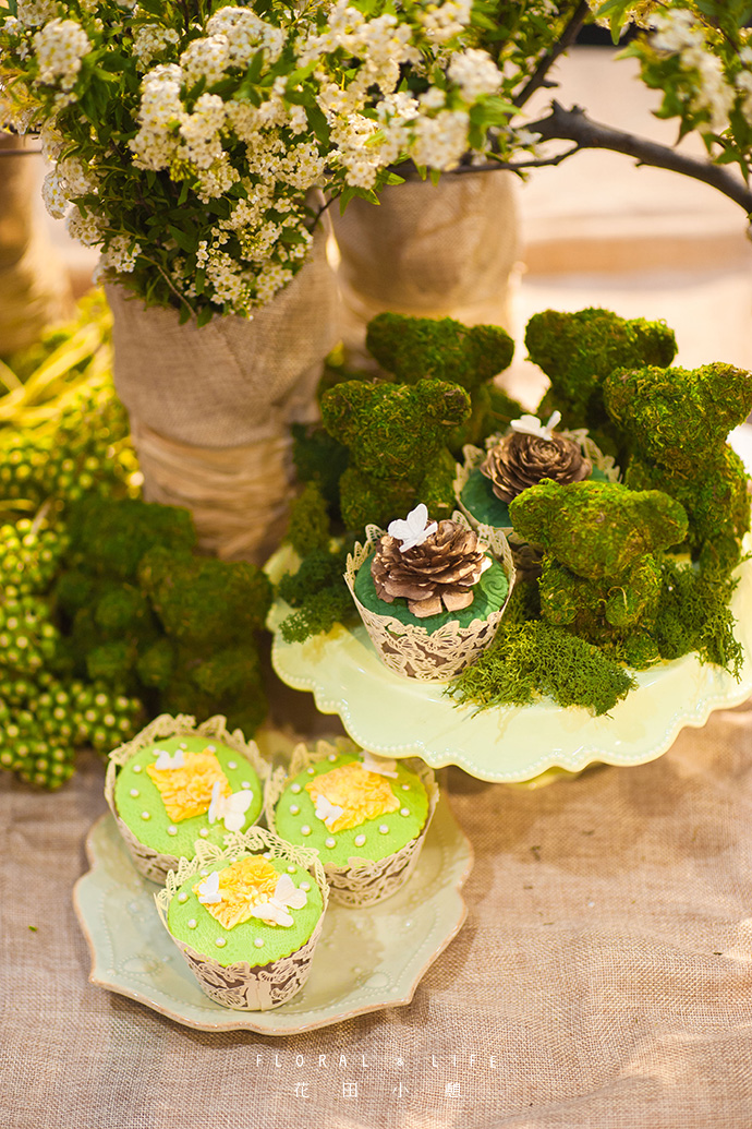 不仅如此,花田小熊与食物的搭配,也是最佳的组合。在绿色的蛋糕上放置一些小熊,增加作品整体一致性的同时,让萌萌的细节一下子就出现了。