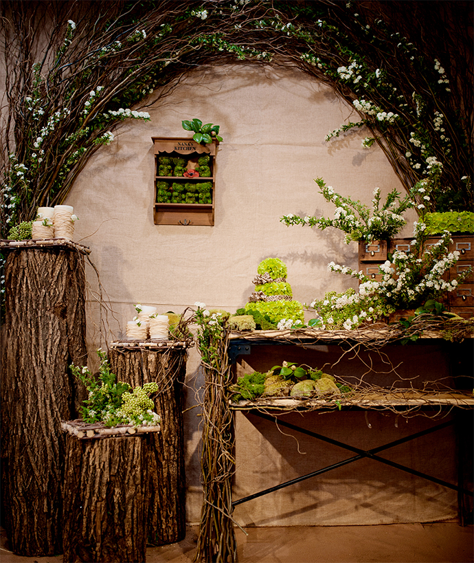 把房中的一角变成了植物庄园,看似复杂实则简易有趣。树枝与鲜花的搭配,木柜与绿植的映衬,