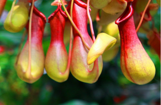 7、<span>猪笼草</span> <span>猪笼草拥有一个独特的吸取营养的器官即</span>“捕虫笼”,它呈圆筒形,下半部稍膨大,笼口上具有盖子。因为形状像猪笼,故称猪笼草。猪笼草因原生地土壤贫瘠,而通过捕捉昆虫等小动物来补充营养,所以其为食虫植物中的一员,是捕蚊高手。